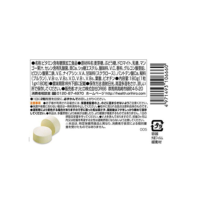 원본상품명: オリヒロ MOSTチュアブル マルチビタミン&ミネラル 180粒