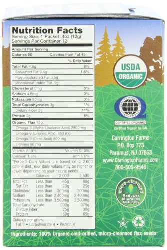 Carrington Farms Organic Ground Milled Flax Seed, 12 Count Easy Serve Packet