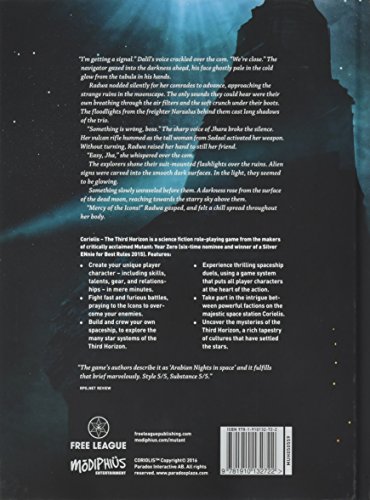 Studio : Modiphius Entertainment Publisher : Modiphius Entertainment Binding : Toy Product Description Coriolis ? The Third Horizon is a science fiction role-playing game from the makers of the critically acclaimed Mutant: Year Zero (six-time nominee and winner of a Silver Ennie for Best Rules 2015).Features:Create your unique player character ?including skills, talents, gear and relationships ?in mere minutes.Fight fast and furious battles, praying to the Icons to overcome your enemies.Build and crew your own spaceship, to explore the many star systems of the Third Horizon.Experience thrilling spaceship duels, using a game system that puts all player characters at the heart of the action.Take part in the intrigue between powerful factions on the majestic space station Coriolis.Uncover the mysteries of the Third Horizon, a rich tapestry of cultures that have settled the stars. 0