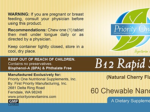 -. Title : P.R.Iority One Vitamins B12 Rapid Shot 60 Chewable Nano Tablets - Natural Energy Booster - Max Absorption Methylcobalamin Vitamin B12