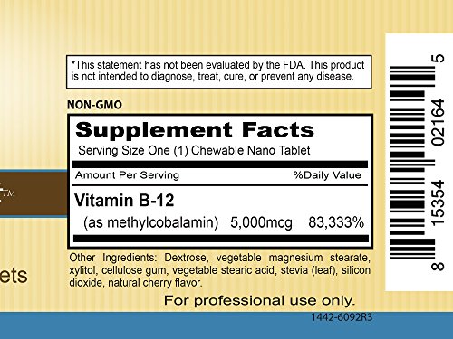-. Feature : INSTANT ENERGY: Get instant energy boost with this natural B-12 supplement, in convenient, fast acting chewable form. / Vitamin B12 - 5,000mcg supplement of Methylcobalamin (Methyl B-12) - Max Strength High potency clinical strength 5mg per tablet / Support for healthy nerve and energy production, healthy production of the formation of red blood cells* / Supports Brain Cells and Nerve Tissue -- Essential for DNA Synthesis- promotes healthy memory, mood, circulation and well-being.* / Natural Ingredients. Natural formula. This product is non-GMO and gluten free. Made in USA at FDA cGMP Registered Facility.