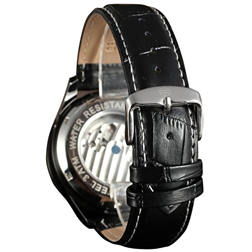 GuTe Mechanical GuTe출품 to 루비 가죽 밴드 캘린더 날짜 심플 손목시계 맨즈 자동 감기 기계식 화이트