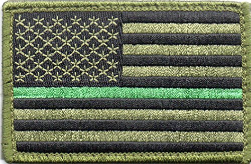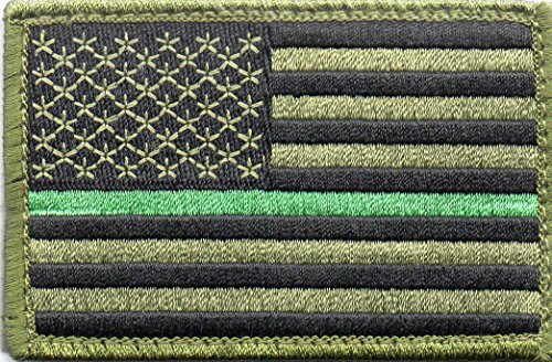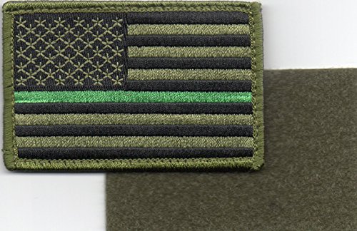 Green US Flag Thin Green Line Patch for Park Rangers, US Border Patrol, and Environment Services Personnel with Hook/Loop Backing