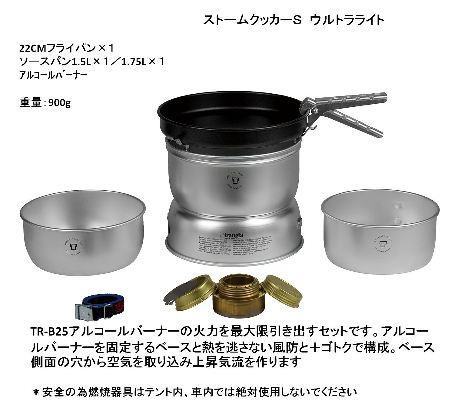 This product is made up of a base fixing the alcohol burner and a wind shield and Gotok which made it not to let the heat escape.