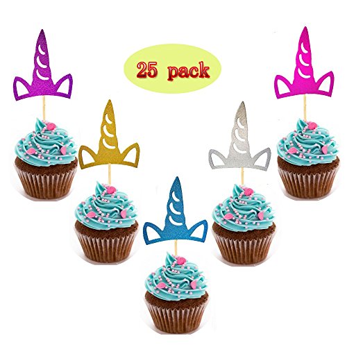 25 Pack Unicorn Cupcake Toppers Cupcake Picks Multicolor Cake Toppers Set for Baby Shower Cake Decorations for Birthday Party Favors