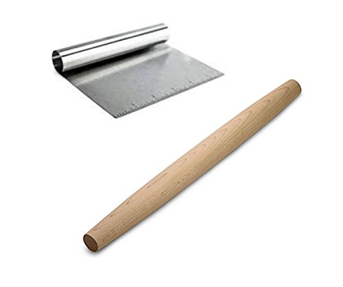 - IDEAL. PERFECT SIZE! Fits comfortably in your hands and handles all common baking tasks with ease. The scraper cutter is a 6" stainless steel tool with great quality allowing you to cut and scrape as needed. The french rolling pin is 12" and flattens and rolls dough smoothly.