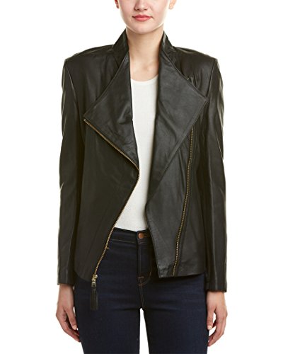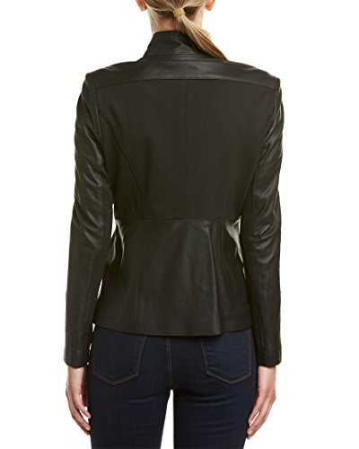 Studio : Via Spiga Women's Outerwear Publisher : Via Spiga Women's Outerwear Binding : Apparel Product Description Asymmetrical light weight genuine leather jacket. Via Spiga has delivered the most comfortable, unique, easy and form fitted fabrication that every woman wants. This jacket is mixed with a ponte knit fabric to show texture and mold to any body type. In addition it has a peplum back which offers sophisticated elegance 0