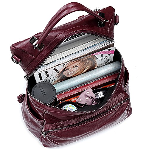 LARGE CAPACITY - Double Zipper on Main Zipper Compartment is convenient for opening in two directions. Interior: 1 zipper pocket and 2 open pockets. Exterior: 1 front zipper pocket, 2 side magnetic pockets and 1 back private zipper pocket.
