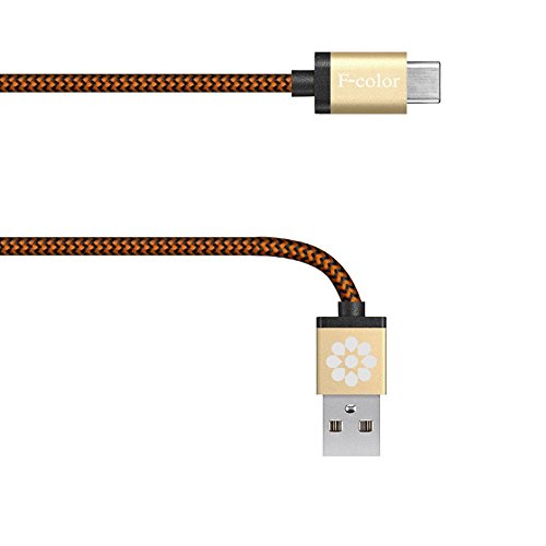 USB C Charger, 6.6ft Long F-color Braided Reversible USB 2.0 USB-C to Type C Cable for Nexus 5X 6P LG G5, OnePlus 2 Apple MacBook 12", Lumia 950 / XL Nokia N1 Google Pixel C, Asus Zen AiO Zuk Z1 Gold