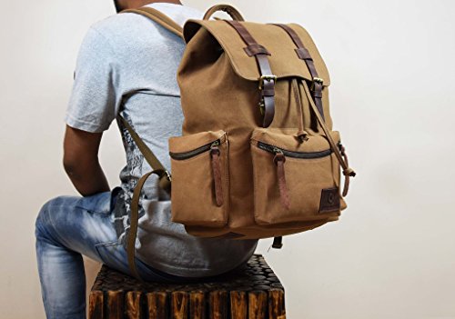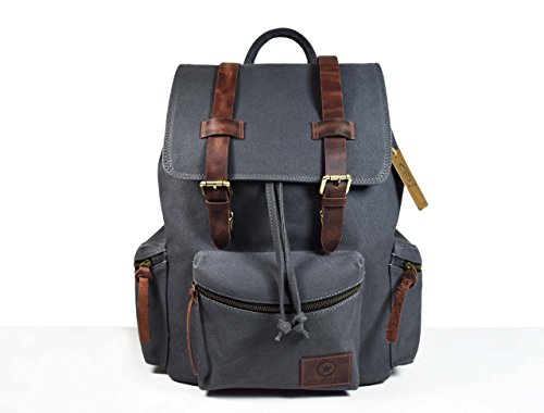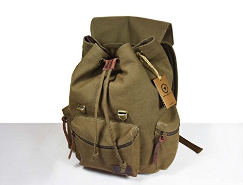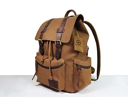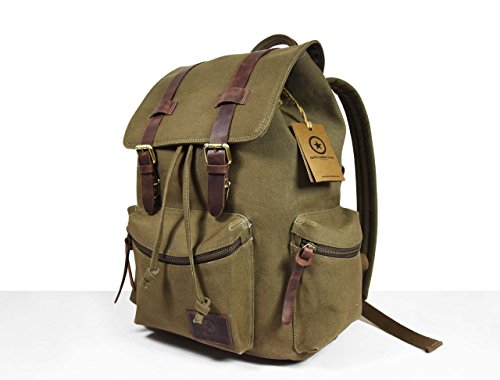 -. Title : Vintage Canvas Backpack Outdoor Hiking Travel Rucksack,Gift For Him Her By Aaron Leather 18x12x6.5 Inches