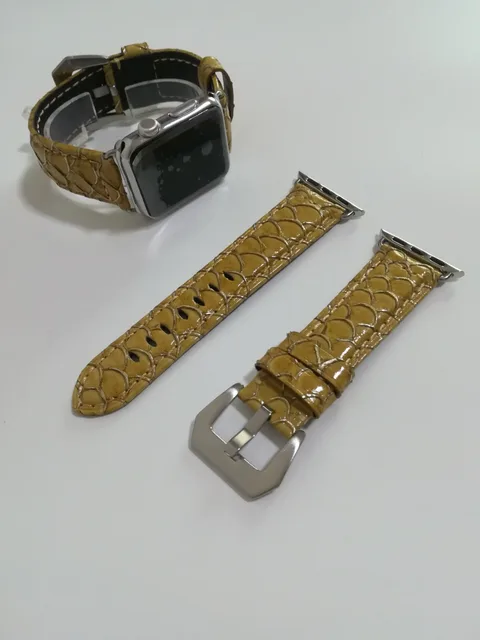 호환성: 애플 시계: 시리즈 1 및 2 38 미리메터 42 미리메터 프리미엄 패션 뱀 물고기 패턴 정품 가죽 스테인레스 스틸 버클 빠르고 번거 무료 설치-슬라이드 원래 밴드