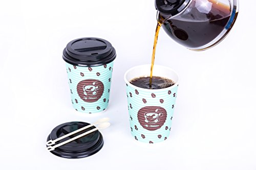 PREMIUM Set of 110 Paper Coffee hot Cups, Disposable Coffee Cups with Lid, 12 Oz To Go Cups with Travel Lids and Stirrers, Insulated Triple Walled Rippled Cup design - No Sleeve required