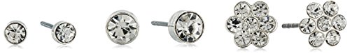 -. Title : GUESS "Basic" Silver Crystal Mini Flower Trio Set Stud Earrings
