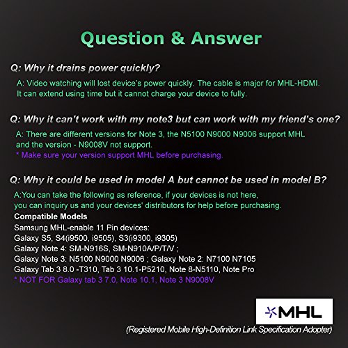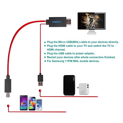 Aibocn® 6.5 Feet 11 Pin Micro USB to HDMI Adapter Cable 1080P HDTV for Samsung Galaxy S5, S4, S3, Note 3, Note 2, Galaxy Tab 3 8.0, Tab 3 10.1, Tab Pro, Galaxy Note 8, Note Pro 12.2(NOT for Tab 3 7.0, Note 10.1, Note 3 N9008V)