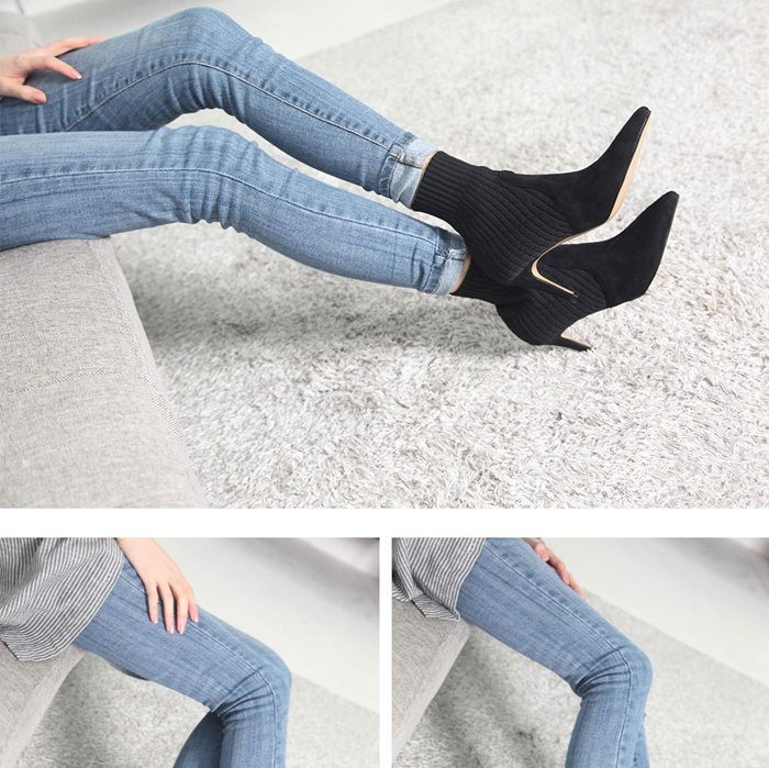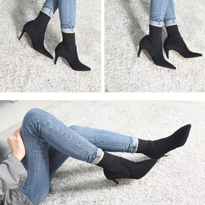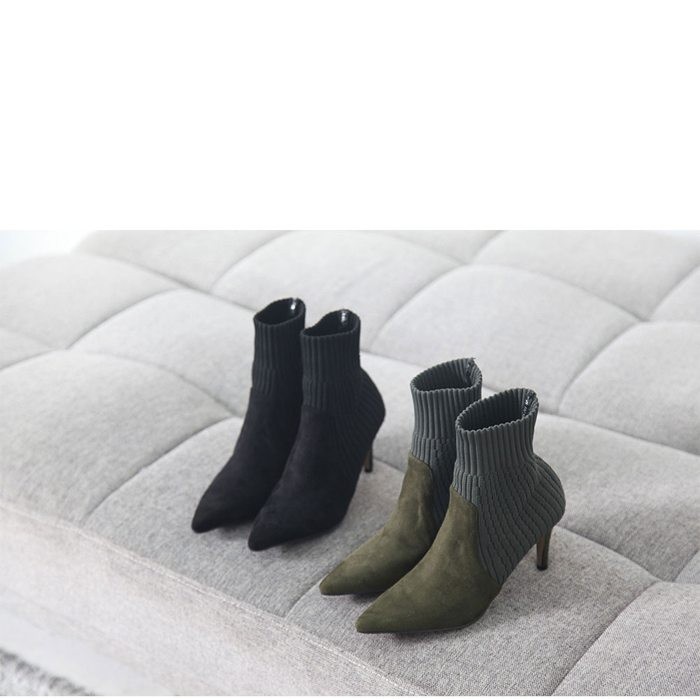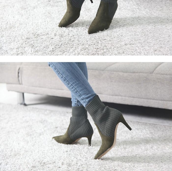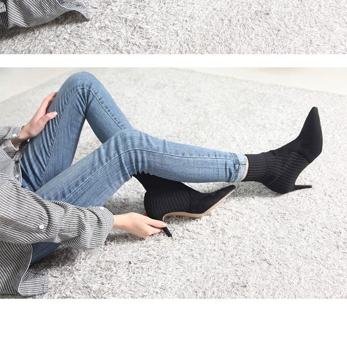 商品名:ブーティ レディース ブーティー ニット ピンヒール ポインテッドトゥ 2017 秋冬 ファッション 靴 婦人靴