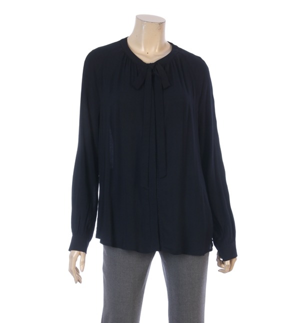 LIST, 잔잔한 셔링주름으로 여성스러운 분위기를 느낄수있으며 리본끈으로 포인트를준 블라우스입니다