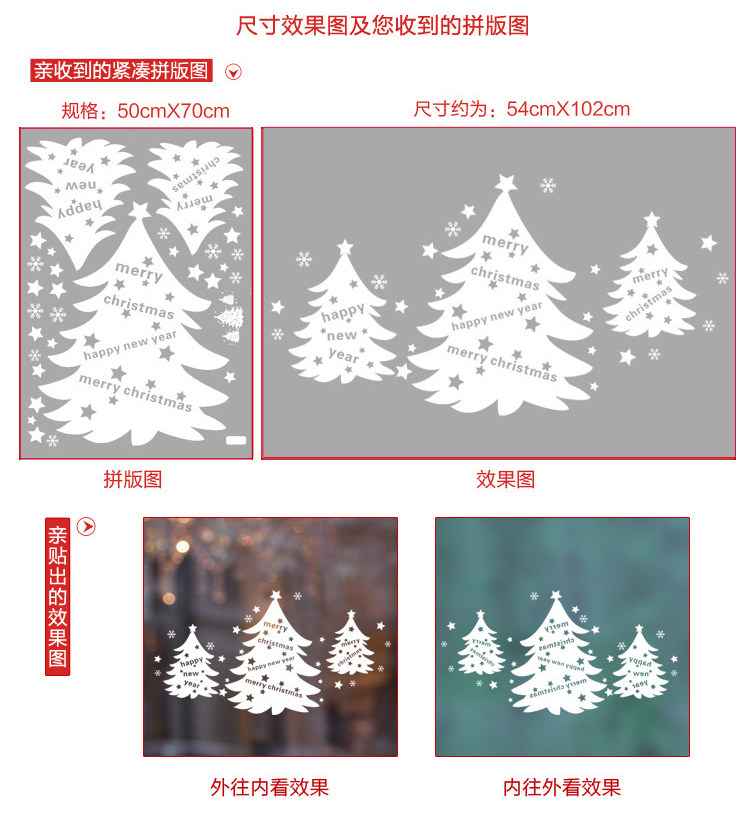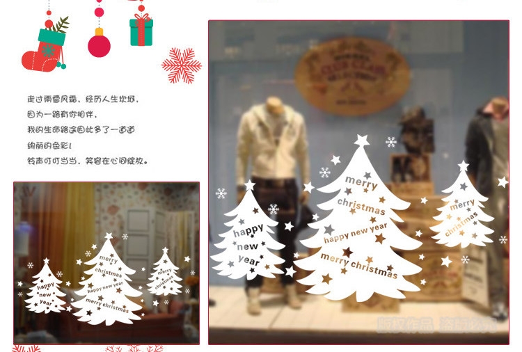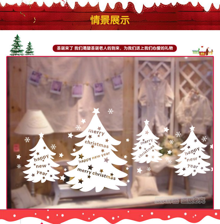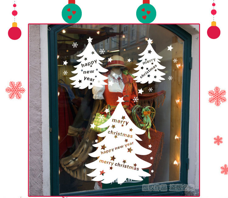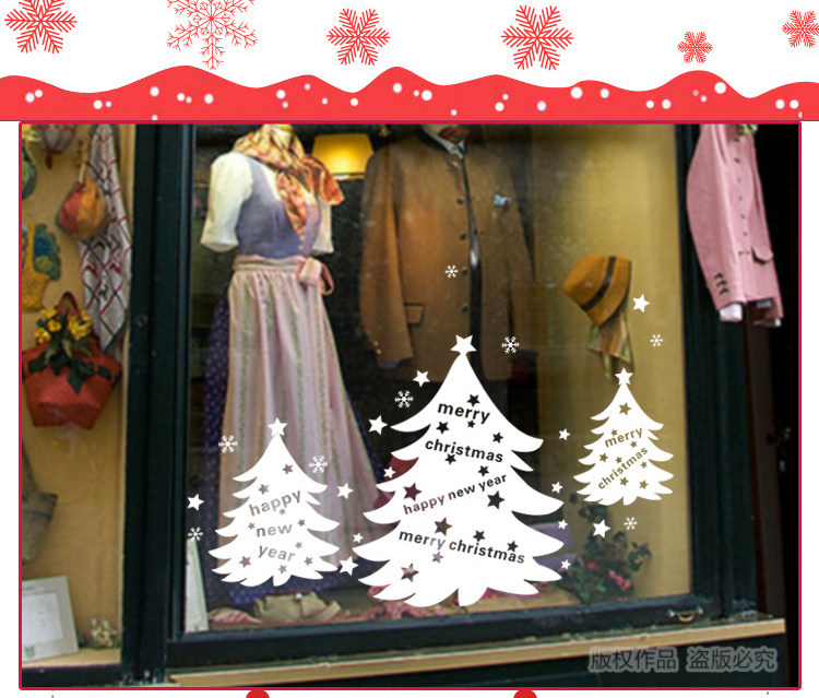 圣诞节静电贴 圣诞树橱窗玻璃贴雪花墙贴纸静电贴膜2017新年快乐