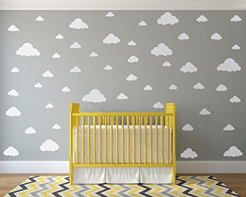 White Clouds Sky Wall Decals - Easy Peel + Stick 50 Clouds Pack - Kids Playroom Nursery Sky for Baby Boy or Girl - Vinyl Sticker Art Large Decoration Graphic Decor Mural