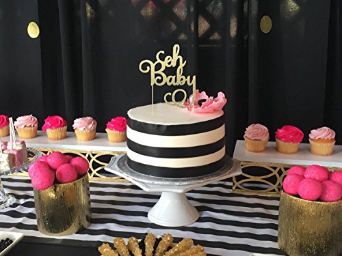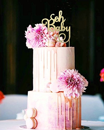 (ROUNDSQUARE)/Stationery Party Supplies/Party Supplies/DIRECT FROM USA/Oh Baby Shower Cake Topper Decoration ? Hard Cardboard Gold Glitter 1 Pack ? by ROUNDSQUARE