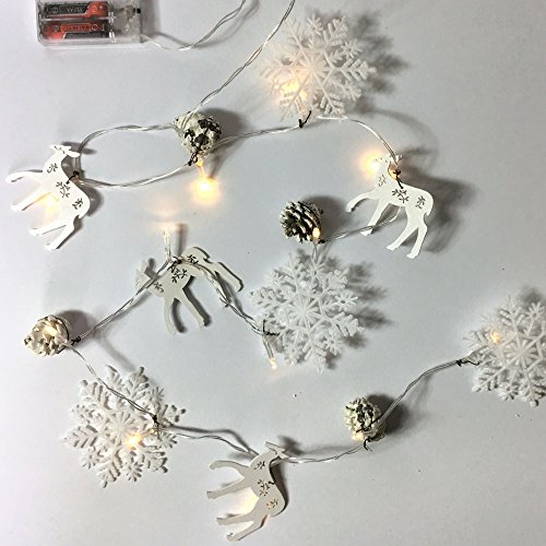 Christmas Garland - LED Lighted Woodland Garland with White Pine Cones, Reindeer and Snowflakes - 200+ Hours of Battery Life