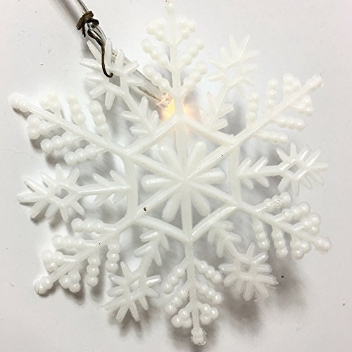 WHITE SNOWFLAKE GARLAND. This holiday garland measures approx. 62" long and features snowflakes, reindeer and white pine cones. There are 12 glowing led lights attached.