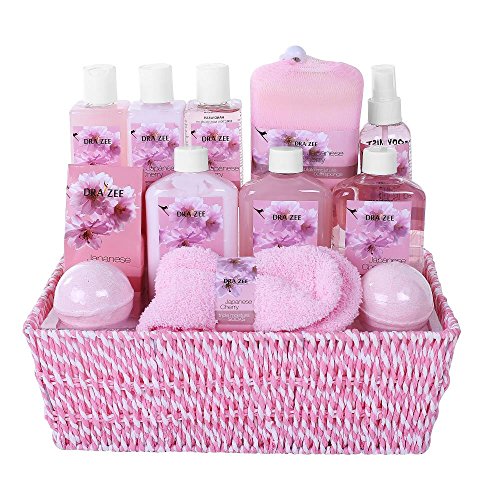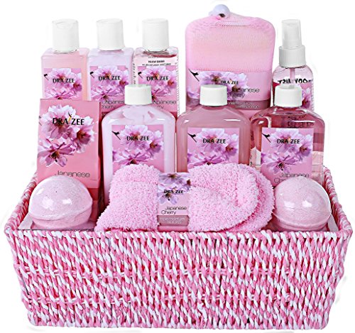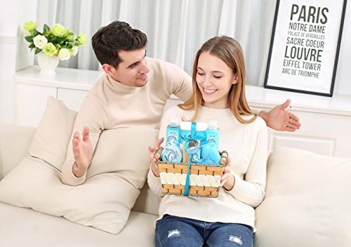 LOADED WITH 7 LUXURY SPA ESSENTIALS: Indulge your wife or girlfriend with a basket overflowing with high quality bath and body products. Included items are: Shower Gel, Bubble Bath, Body Scrub & Lotion Bath Puff Spa Sponge & Wooden Brush .
