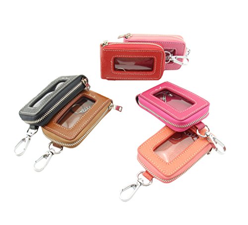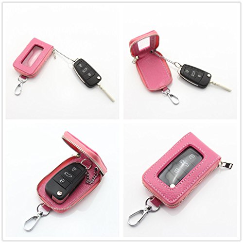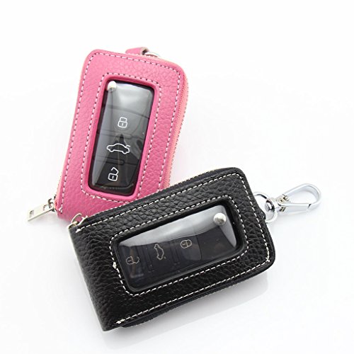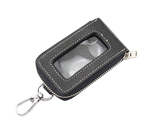 Motosupply Universal Car Smart Key Case Remote Fob Case Leather Holder Cover Bag Chain for Men Women Black