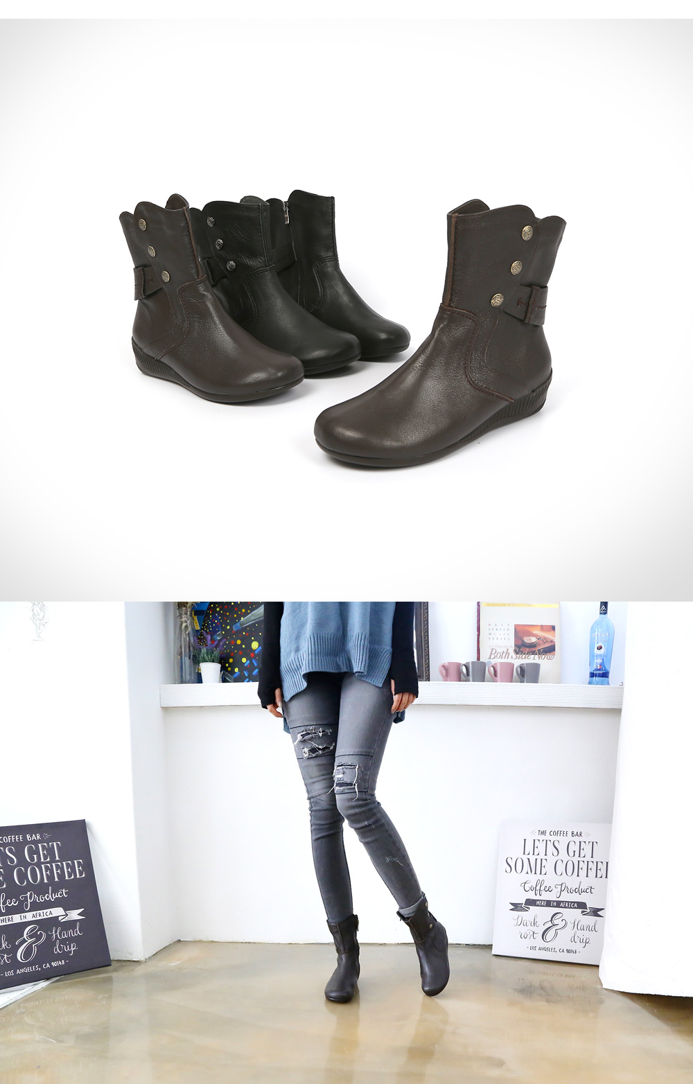 핸드메이드의 특징이 고스란히 살려주는 엔티크 앵클 부츠입니다.