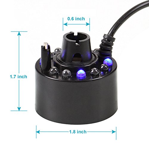 mountain ark 450ml/H Mist Maker Fogger Water Fountain Pond Atomizer Air Humidifier with 12 Colorful LEDs Light for Decoration , Air Humidifier