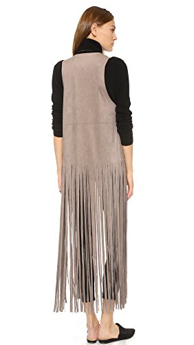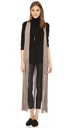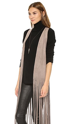 Long, laser-cut fringe accents the hem of this faux-suede BB Dakota vest. Raw edges. Unlined.