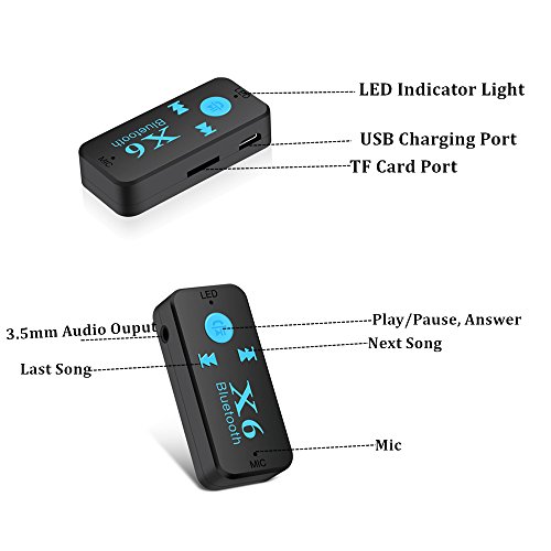 URANT Bluetooth Receiver/ Car Kit, Portable Wireless Audio Adapter 3.5mm Aux Stereo Output for Car/Home Stereo System(Bluetooth 4.0, A2DP, Build in-Mic, Noise Cancelling, Support TF Card)