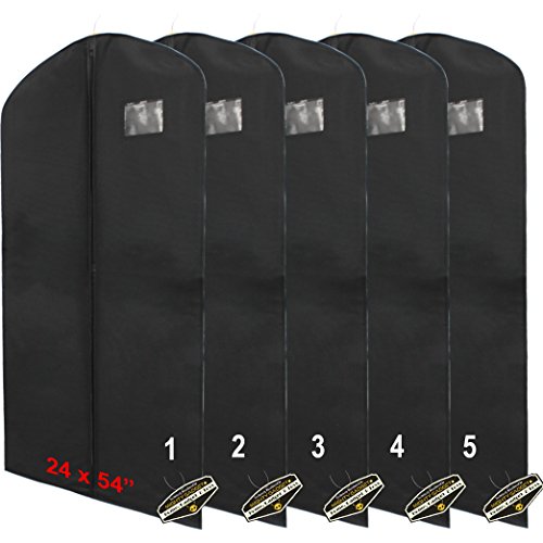 -. Title : Mighty Gadget (R) 5 Pack of Non-Woven Breathable Men Women Dress Suits Coats Black Garment Bag 24” x 54”