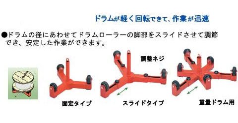● Slide the legs of the drum roller according to the diameter of the drum and adjust it, so you can perform stable work.