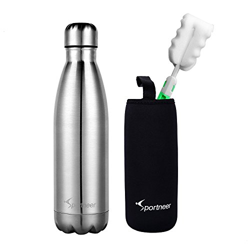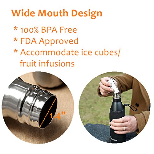 BUNUS: This water bottle comes with a free black bottle cover with a carrying strap for portability, and also, a brush is included for easy cleaning
