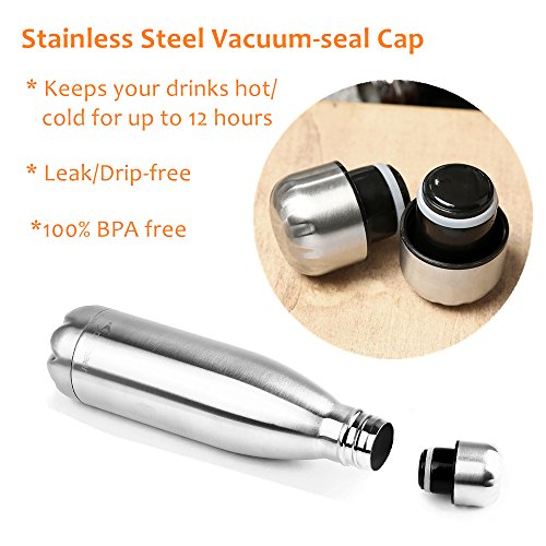 UP TO 12 HOURS INSULATION: Unique double walled vacuum insulation design with vacuum-seal cap keeps your drinks hot or cold for up to 12 hours