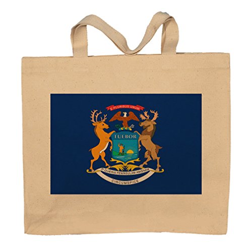 Binding : Apparel Product Description Michigan State Flag. A Fun way to show how you feel with a totebag. The Design/Saying is printed on the front of this canvas tote bag. We use the newest best technology to print the design with great inks that are cured into the product. This new high tech way of producing garments is very fade resistant. WE DO NOT USE TRANSFERS. It is great, since you dont have that thick transfer feeling. The feel is very smooth and comfortable. 0