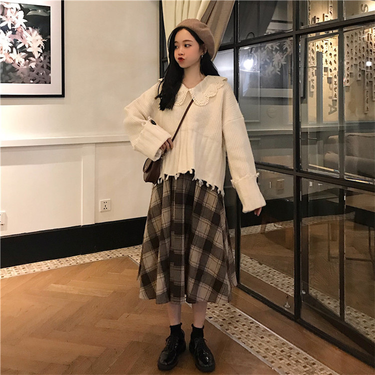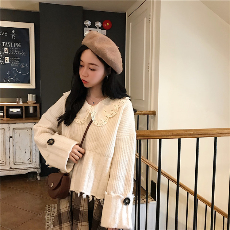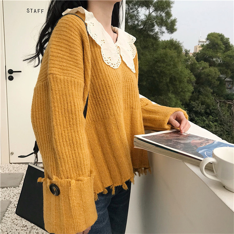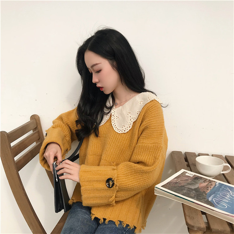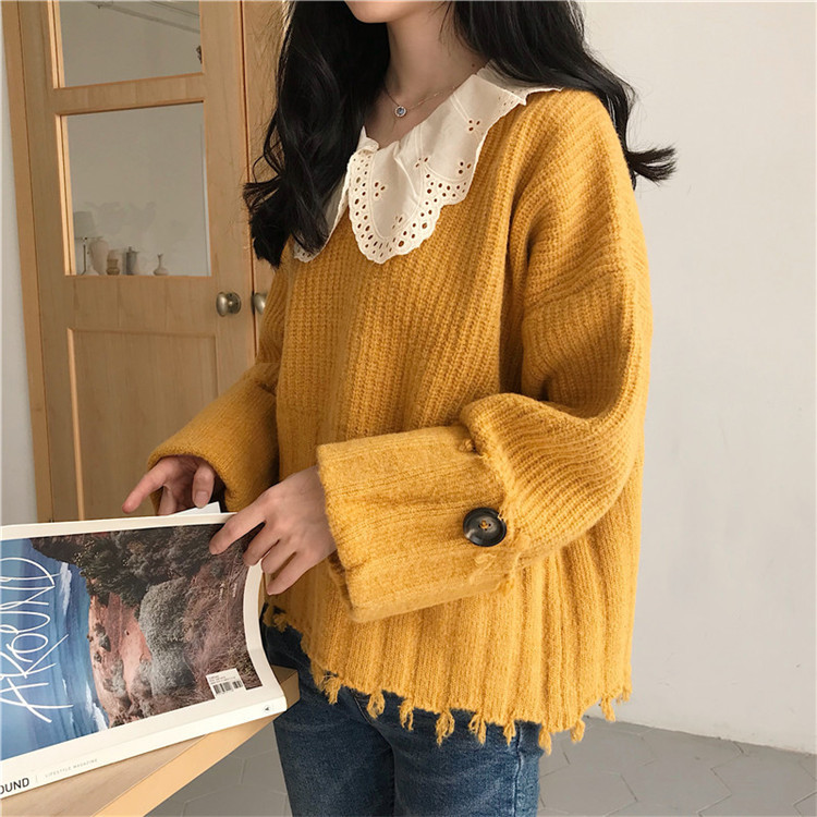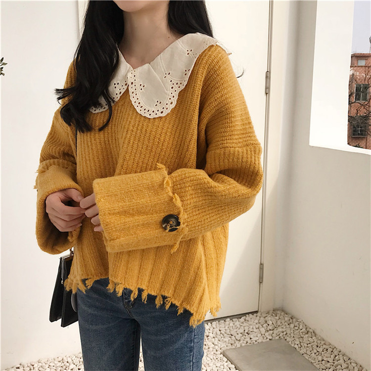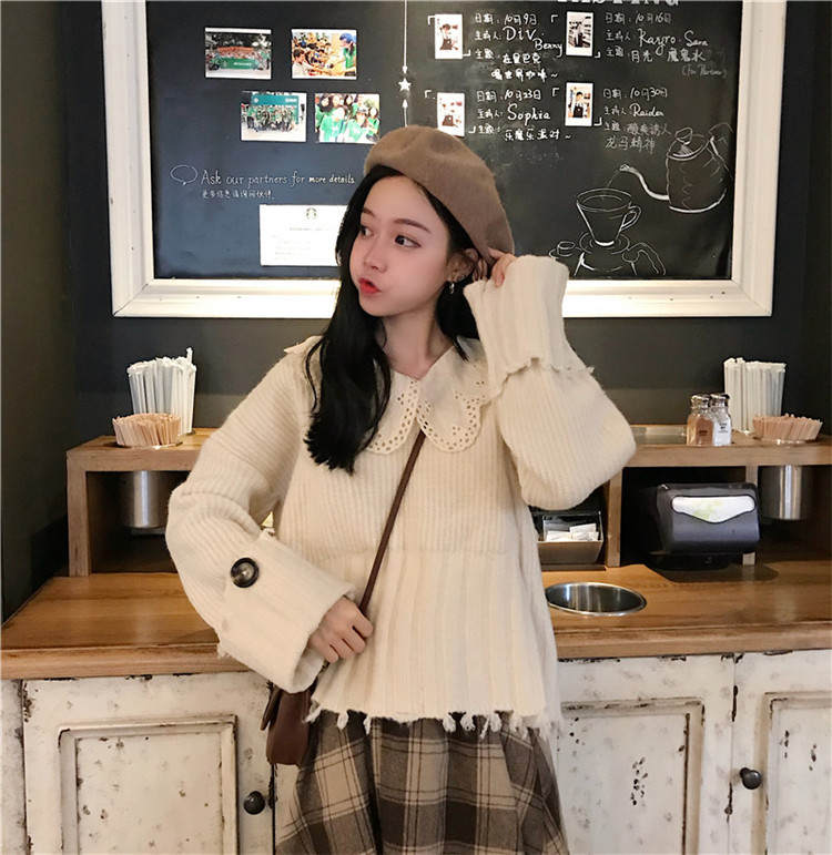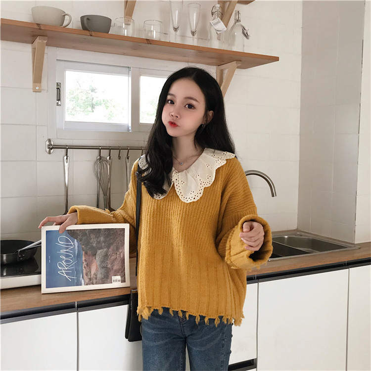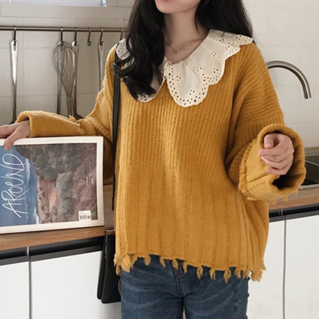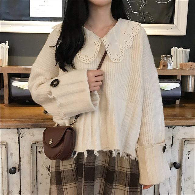 大きめの襟レースがキュートな定番人気のリブニットのご紹介です。