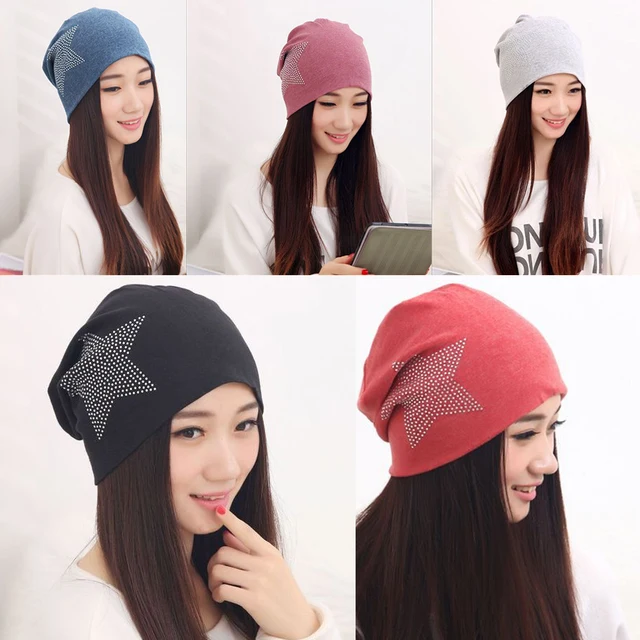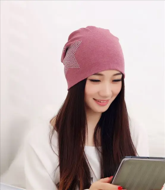 | [해외]2015 새로운 도착 니트 니트 패션 블랙 레드 핑크 화이트 보닛 다이아몬드 커플 면 크리스탈 스타 여성 Touca 비니 |