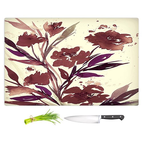 DiaNoche Designs CB-JuliaDiSanoPocketPosiesBrown2 Julia Di Sano-Pocketful Posies Brown Cutting Boards from, Large 15" x 11"