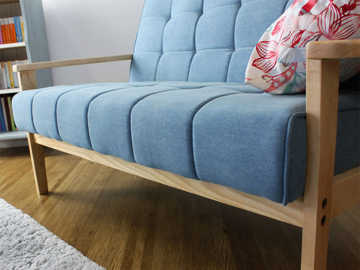 ●人気の北欧デザインに、色鮮やかな布地を組み合わせた当社オリジナルソファです。若干の傾斜と適度な硬さをもったシートは、のんびりと長時間くつろぐことができます。人とはちょっと違う、個性的な北欧スタイルのお部屋作りにぴったりのソファです。