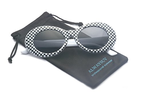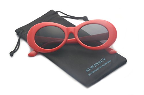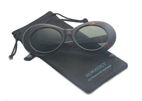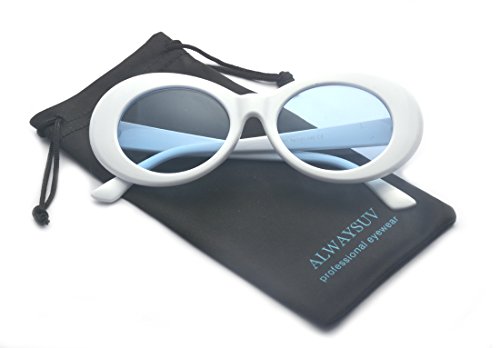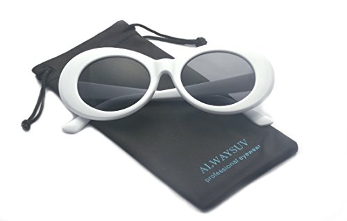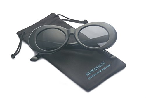 | ALWAYSUV Clout Goggles Oval Mod Retro Kurt Cobain Sunglasses Thick Frame Round Lens |