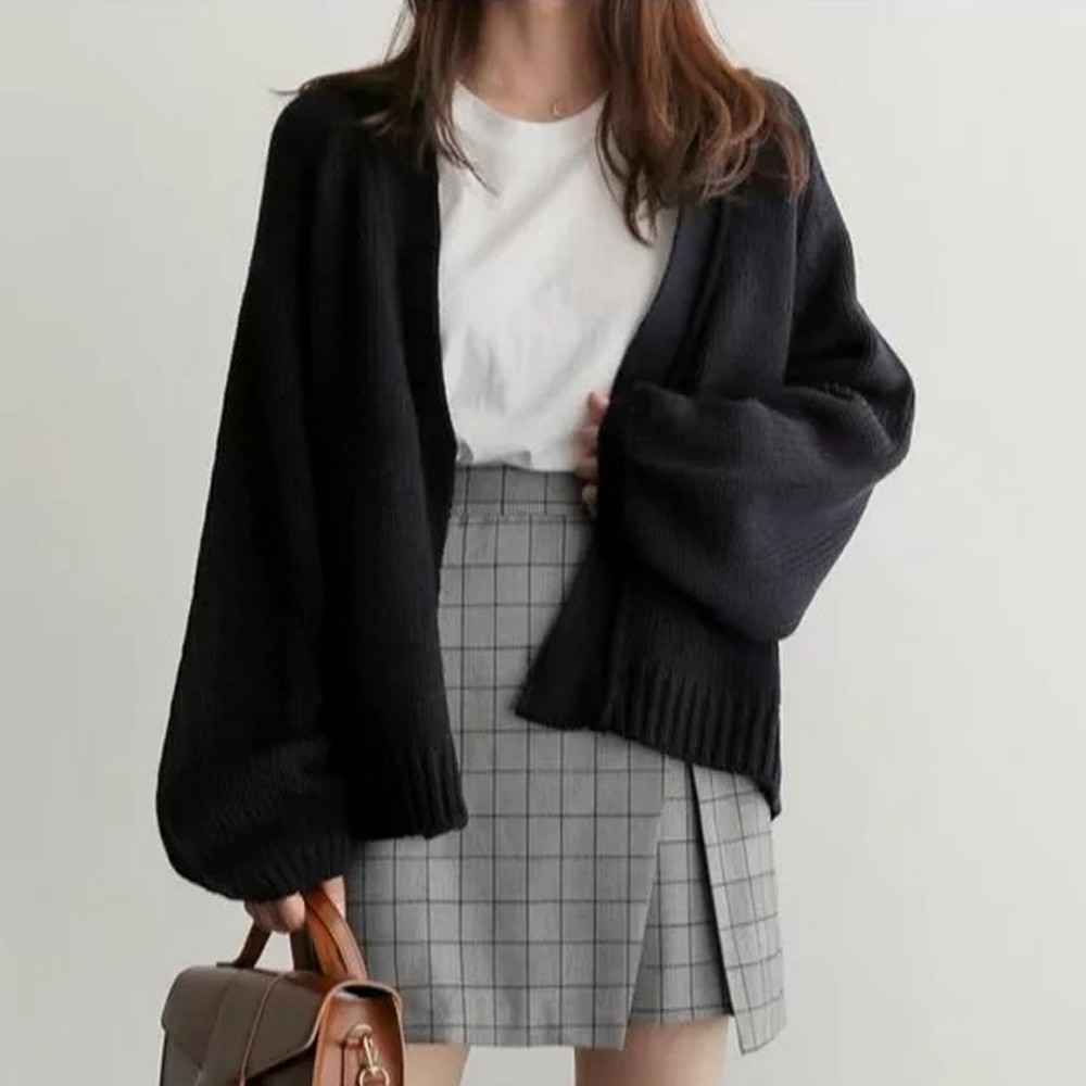 羽織るだけで即旬見えコーデに格上げするボリューミーなニットカーディガン