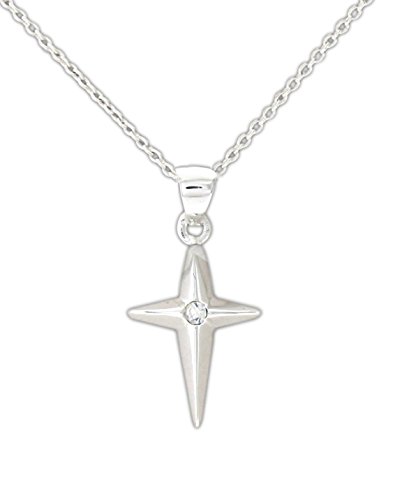 -. Feature : Silver-plated cross necklace celebrates First Communion / 16" link chain / Lobster claw clasp