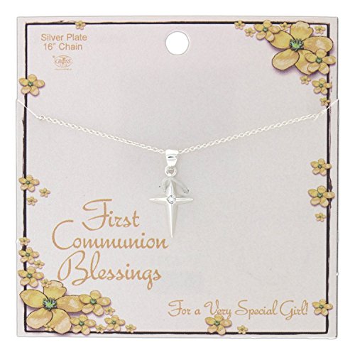 -. Title : Dicksons "First Communion Blessings" Silver-Plated Cross Necklace on 16" Chain