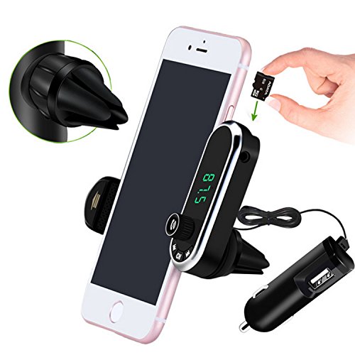 -. Title : ALIZOM Bluetooth FM Transmitter, Wireless In-Car Radio Transmitter Adapter Vehicle Mounts Bluetooth Phone Holder/w USB Car Charger AUX Input LED Display TF Card Slot - Black
