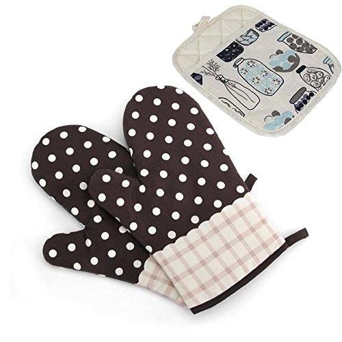 High temperature oven mitts , cotton cloth anti-scald heat resistant gloves for baking,cooking,Microwave,Barbecue (1 pair)(with Heat resistant pads) (Plaid)