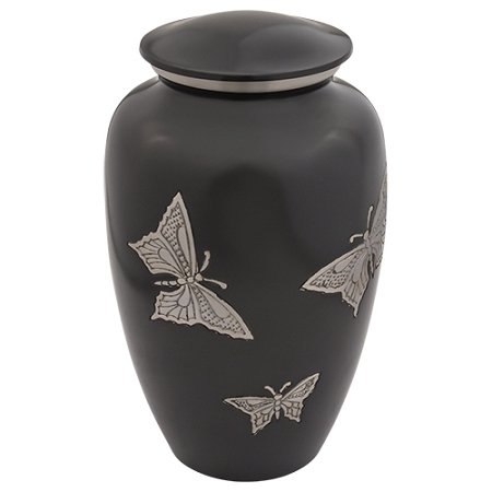 Silverlight Urns Classic Engraved Butterfly Urn for Ashes, Gray, Grey Brass Urn, Adult Size Funeral Urn, 10.25 Inches High
