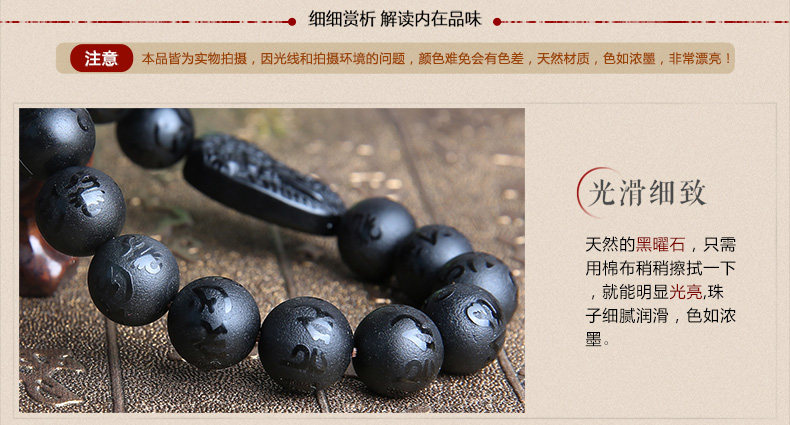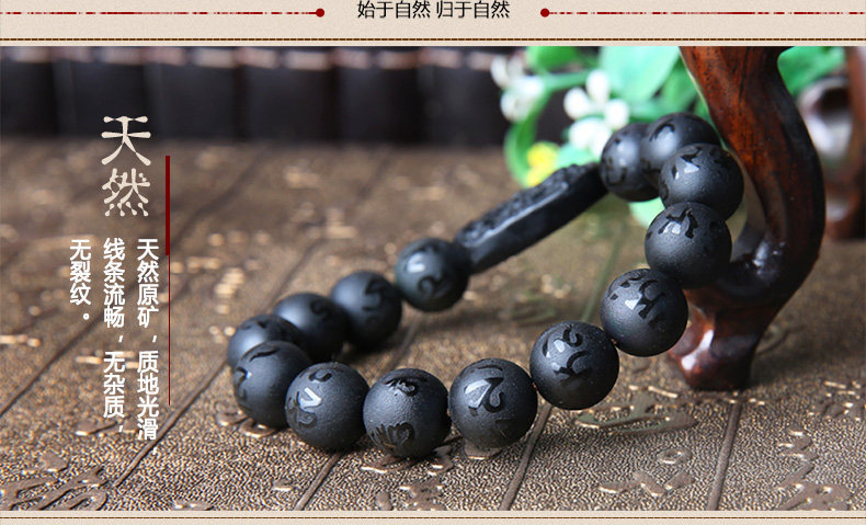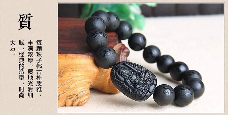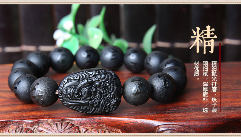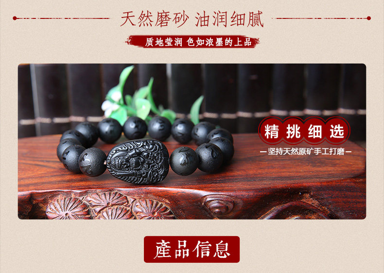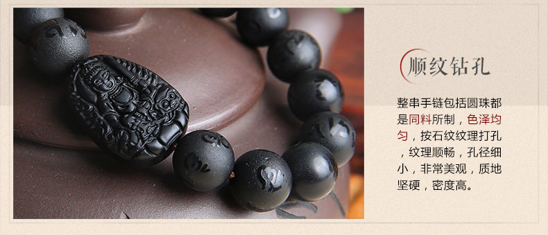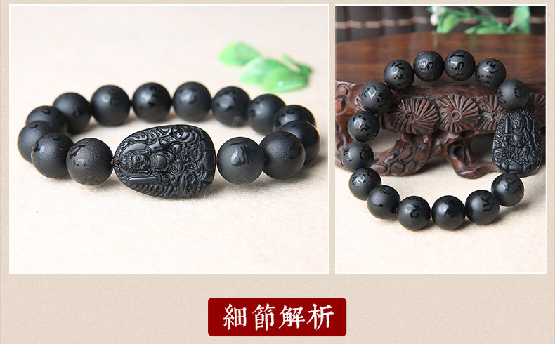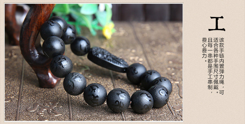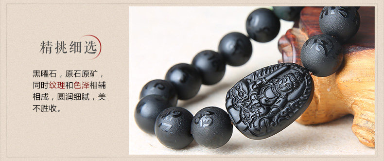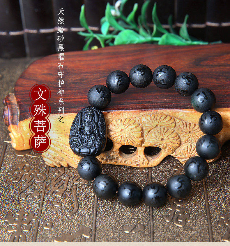 黑曜石文殊菩萨属兔手链本命佛六字真言男女款手串生肖兔