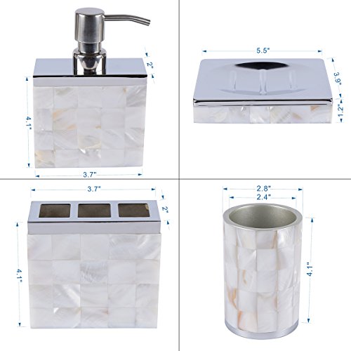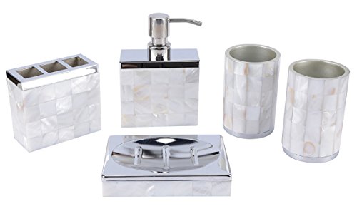 AIMONE 5 Pcs Bathroom Accessories Set Natural Mother of Pearl White Sea Shell Style Hardware Edging Elegant Suite for Home Decor