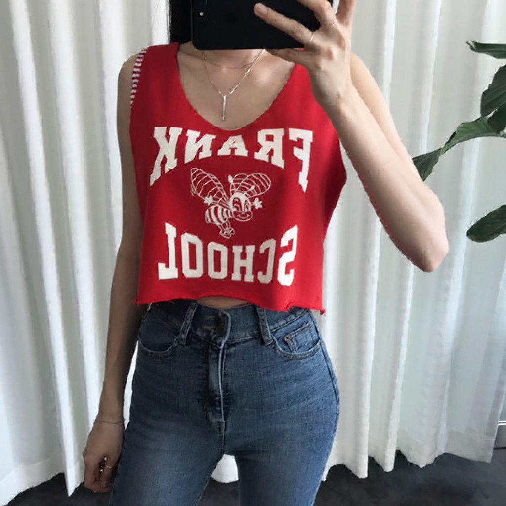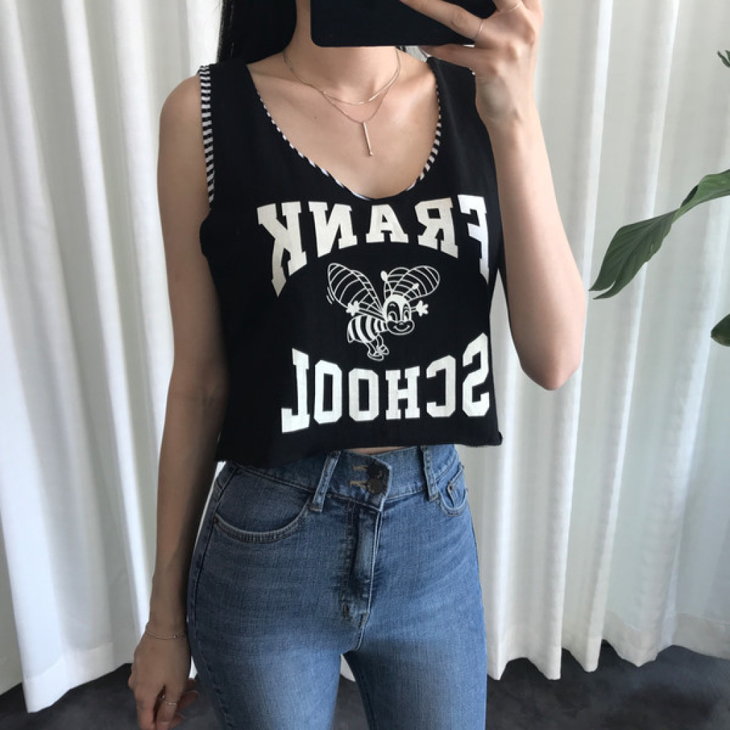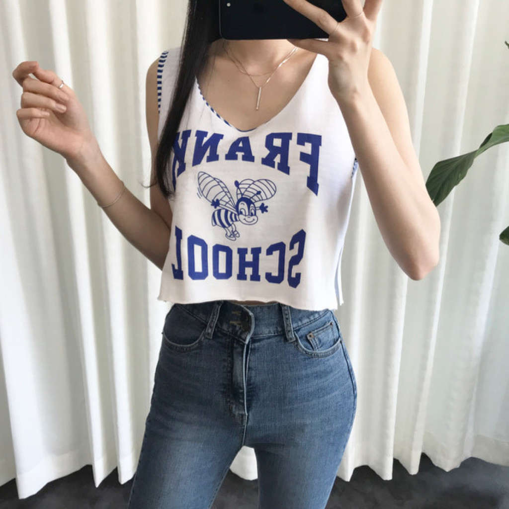 캐주얼한 프린팅이 들어간 나시티셔츠